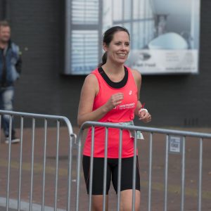 Tenslotte mocht ik nog 5 km hardlopen. Ik had één zogenaamde koppeltraining gedaan van te voren (eerst fietsen en vervolgens gelijk hardlopen), dus ik wist een beetje hoe het wisselen tussen fietsen en lopen aan zou voelen. Je hebt het idee dat je heel erg langzaam gaat, omdat je op de fiets natuurlijk veel sneller bent. In de praktijk valt dat best wel mee en loop je gewoon een prima tempo. Het wisselen van fietsen naar lopen ging goed (oke, ik viel wel bijna van m’n fiets af, omdat de balk waarvoor je afgestapt moest zijn direct na een bochtje lag en ik niet had verwacht dat ik al zo snel moest afstappen, maar het ging net goed ;-) ) en aangezien ik mijn hardloopschoenen op de fiets al aan had, hoefde ik niet nog eens van schoenen te wisselen.