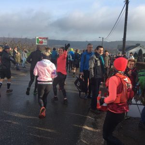 Het parcours ging wederom wat op en neer. Het grootste gedeelte kon ik rennend afleggen, alleen berg of heuvel op moest ik af en toe wandelen. Ik was heel blij met mijn trailschoenen, want door de modder waren sommige stukken spekglad. En het was zwaar lopen zeg! Iedere keer moest je je voeten weer uit de klei trekken, wat het niet gemakkelijker maakte. Voor ik het wist zat ik al op 7 km. Wauw, al op de helft! Ik had geen muziek op, maar ik verveelde me geen moment. Ik moest me goed concentreren op de passen die ik zette en op de momenten dat het parcours wat vlakker was, kon ik genieten van de omgeving. Ik wist gelijk weer waarom ik trailen leuk vind!