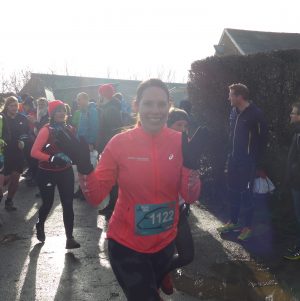 Het parcours ging wederom wat op en neer. Het grootste gedeelte kon ik rennend afleggen, alleen berg of heuvel op moest ik af en toe wandelen. Ik was heel blij met mijn trailschoenen, want door de modder waren sommige stukken spekglad. En het was zwaar lopen zeg! Iedere keer moest je je voeten weer uit de klei trekken, wat het niet gemakkelijker maakte. Voor ik het wist zat ik al op 7 km. Wauw, al op de helft! Ik had geen muziek op, maar ik verveelde me geen moment. Ik moest me goed concentreren op de passen die ik zette en op de momenten dat het parcours wat vlakker was, kon ik genieten van de omgeving. Ik wist gelijk weer waarom ik trailen leuk vind!